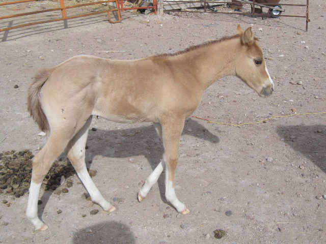 This is an awesome filly. Very well built and is a really neat red dun roan color. She was born looking more red dun, but now looks more roan and is very striking. Extremely athletic nad a very nice, trusting nature. She will be a back pocket gal and do what you want her to do.